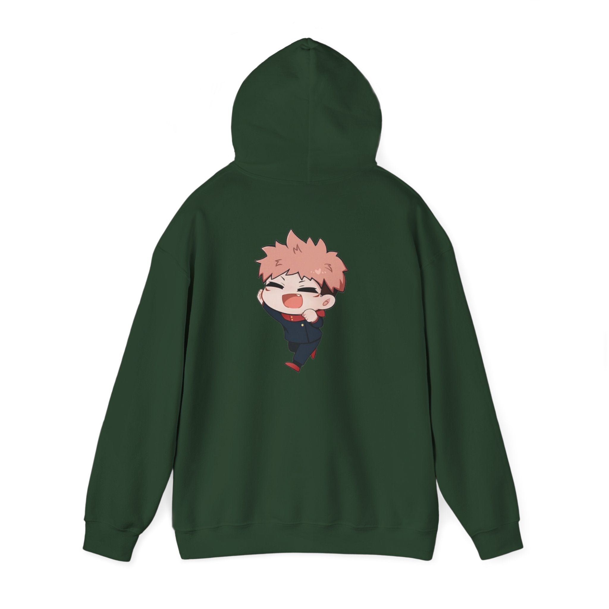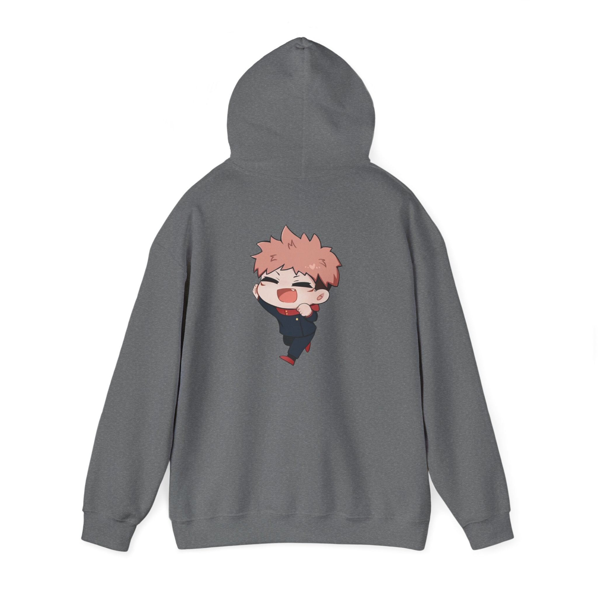 Stay cozy and stylish with this Chibi Character Hoodie featuring Itadori. Perfect for anime fans looking to add a touch of cuteness to their wardrobe. This hoodie is ideal for casual wear, lounging at home, or attending anime conventions and events.